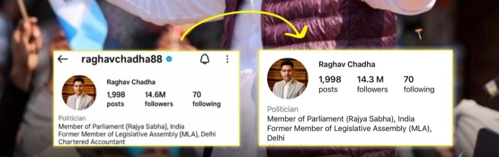 और जो बात हमने अभी की इस बात का सबूत आपको यहां से मिल जाएगा कि भारतीय जनता पार्टी में जाने का ऐलान करने के कुछ ही समय बाद से ही राघव चड्ढा के ऑफिशल इंस्टाग्राम अकाउंट से फॉलोअर्स तेजी से कम होना शुरू हो गए, लाखों फॉलोअर्स ने उन्हें अनफॉलो कर दिया और उन्हें बता दिया कि वह लोग उनके साथ इसीलिए थे कि वह भारतीय जनता पार्टी के खिलाफ थे अब अगर वह इस पार्टी का समर्थन कर रहे हैं तो वह लोग उनके साथ नहीं है।