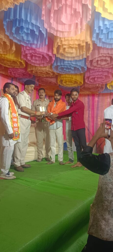 इसी क्रम में शिवसेना द्वारा नवरात्रि त्योहार एवं विजयादशमी, चल समारोह पर सुरक्षा व्यवस्था बनाए रखने हेतु थाना प्रभारी सिटी सिटी कोतवाली रावेंद्र द्विवेदी का किया गया सम्मान। जिसके बाद कई और लोगों का भी सम्मान किया गया।